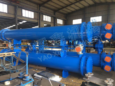該冷卻器采用雙聯(lián)結(jié)構(gòu),由兩只相同面積的冷油器和三通閥裝置構(gòu)成,一只工作,一只備用,每個冷卻器能承擔(dān)整個系統(tǒng)的冷卻負(fù)荷,管板一頭固定,一頭浮動、可拆卸的管束和水室箱蓋,便于運(yùn)行過程中清洗、檢查和維修。冷卻器的材質(zhì),根據(jù)使用場所、水系統(tǒng)條件可有多種選擇。